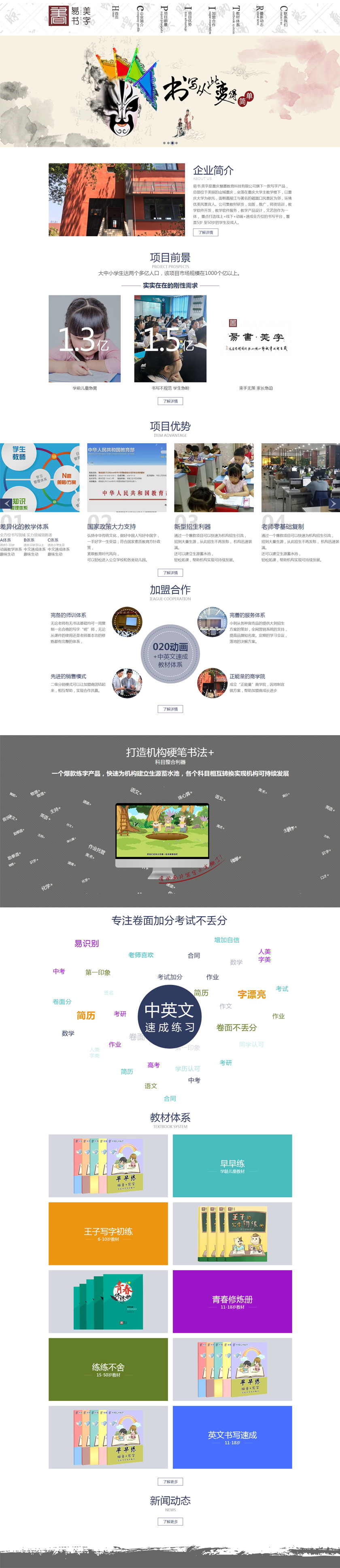 Project Description 易书.美字练字是重庆慧墨教育科技有限公司旗下一款写字产品,总部位于美丽的山城重庆,坐落 在重庆大学主教学楼下,以重庆大学为依托,面朝嘉陵江与著名的磁器口风景区为邻,环境优美 风景宜人。公司集教材研发,出版,推广,师资培训,教学软件开发,教学软件服务,教学产品 设计,文艺创作为一体,重点打造线上+线下+动画+速成全方位的书写平台,覆盖5岁至50岁的学 ... Official website address 武汉# I want to share